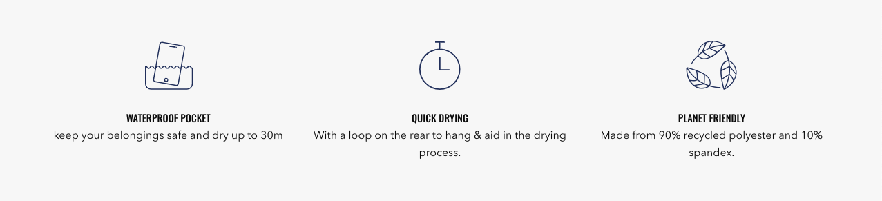 The pocket in our swim shorts is 100% waterproof, providing maximum protection for your valuables. Tested to withstand depths of up to 30 meters and meeting IPX8 standards, you can trust that your belongings will remain completely dry, even in the harshest aquatic environments